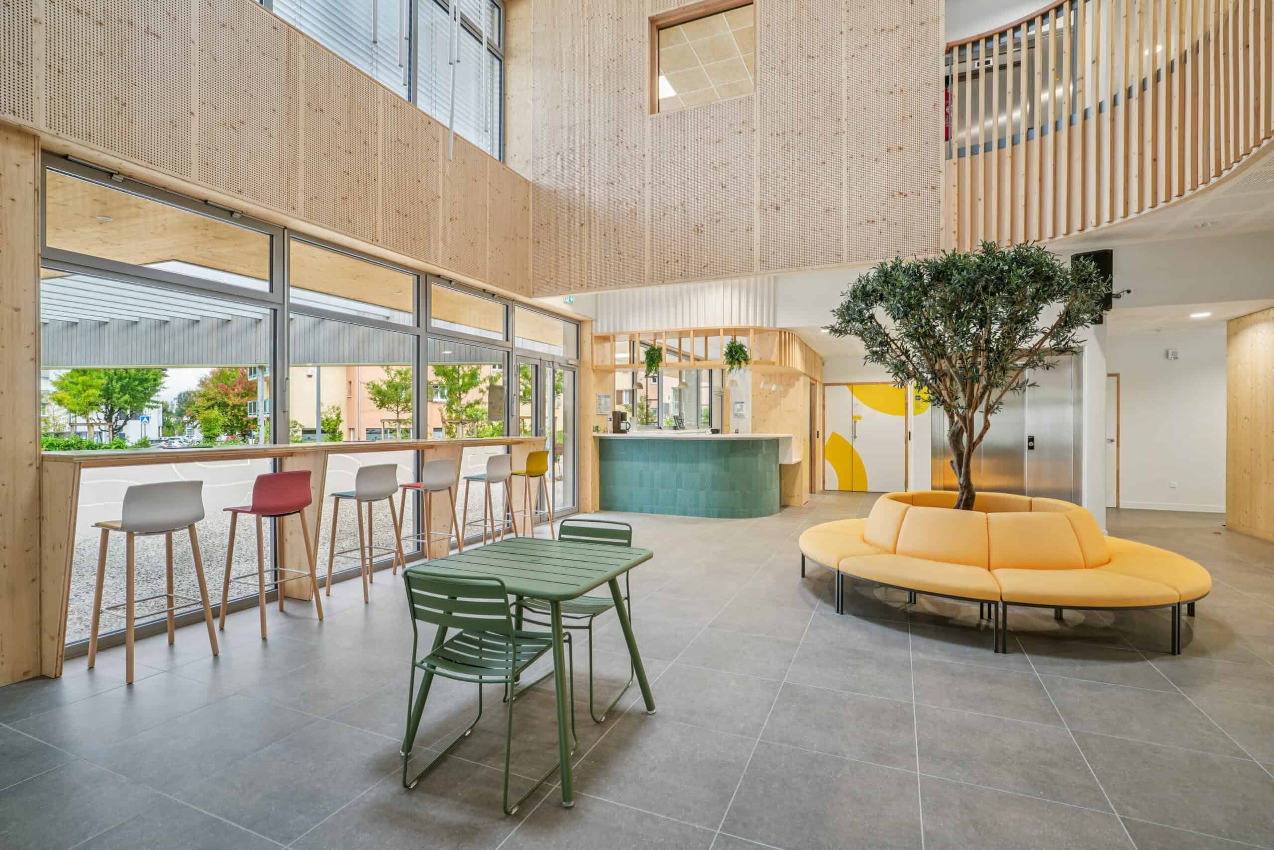 Banquettes, assises, solutions acoustiques et mobilier durable pour créer des lieux accueillants, favorables au lien social.