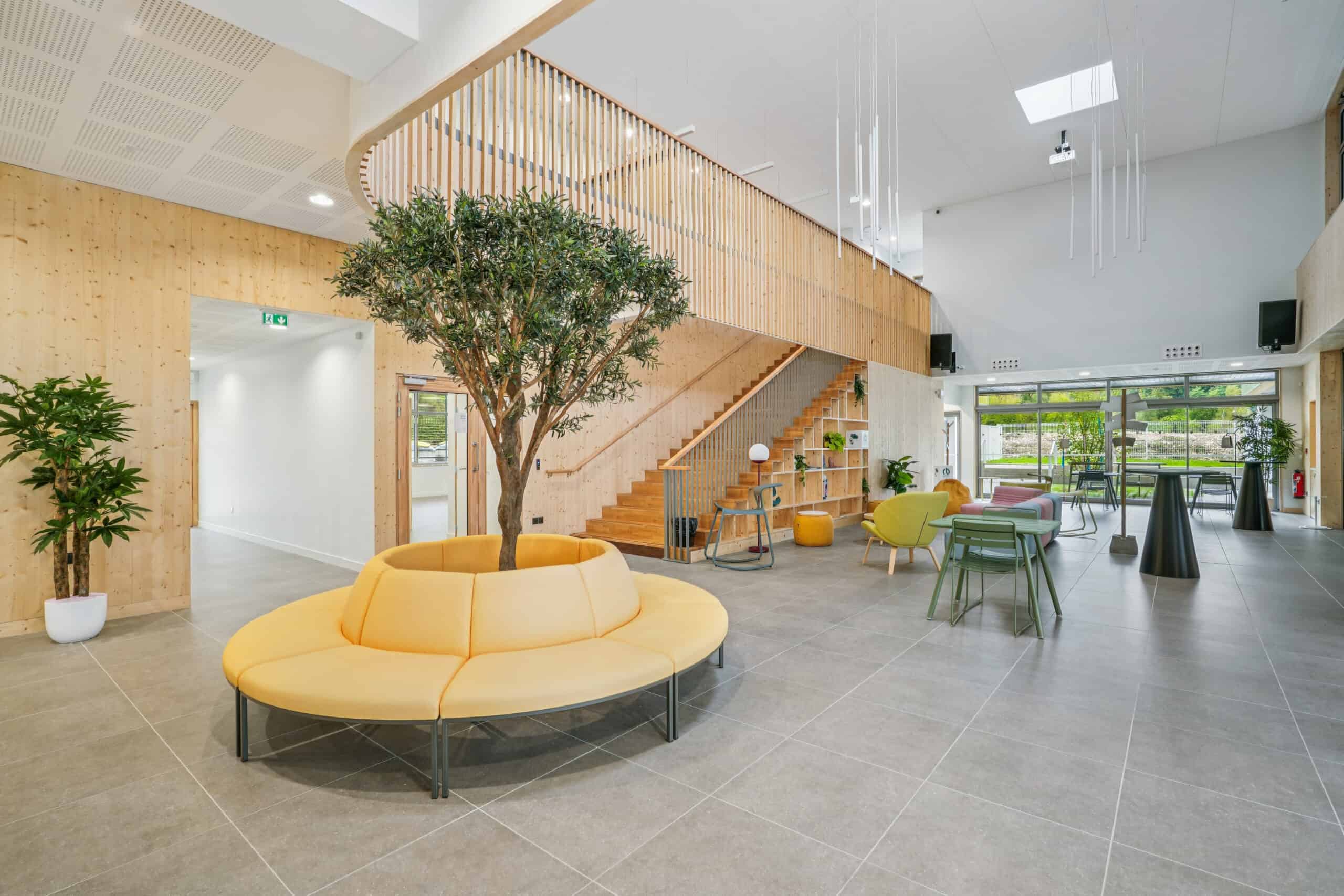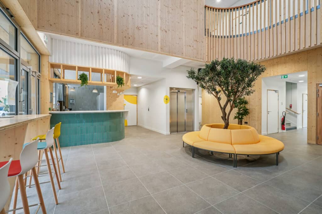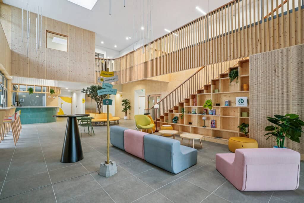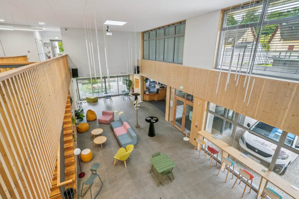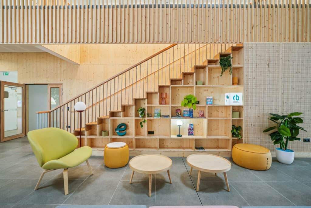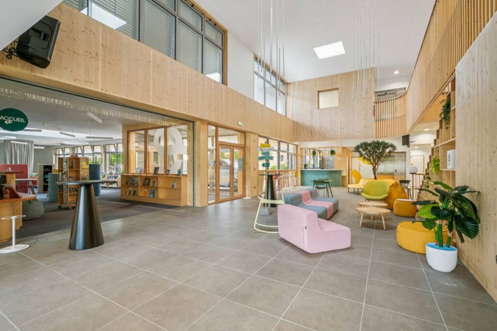 WOM a aménagé l’ensemble du bâtiment avec un mobilier modulable, chaleureux et fonctionnel :