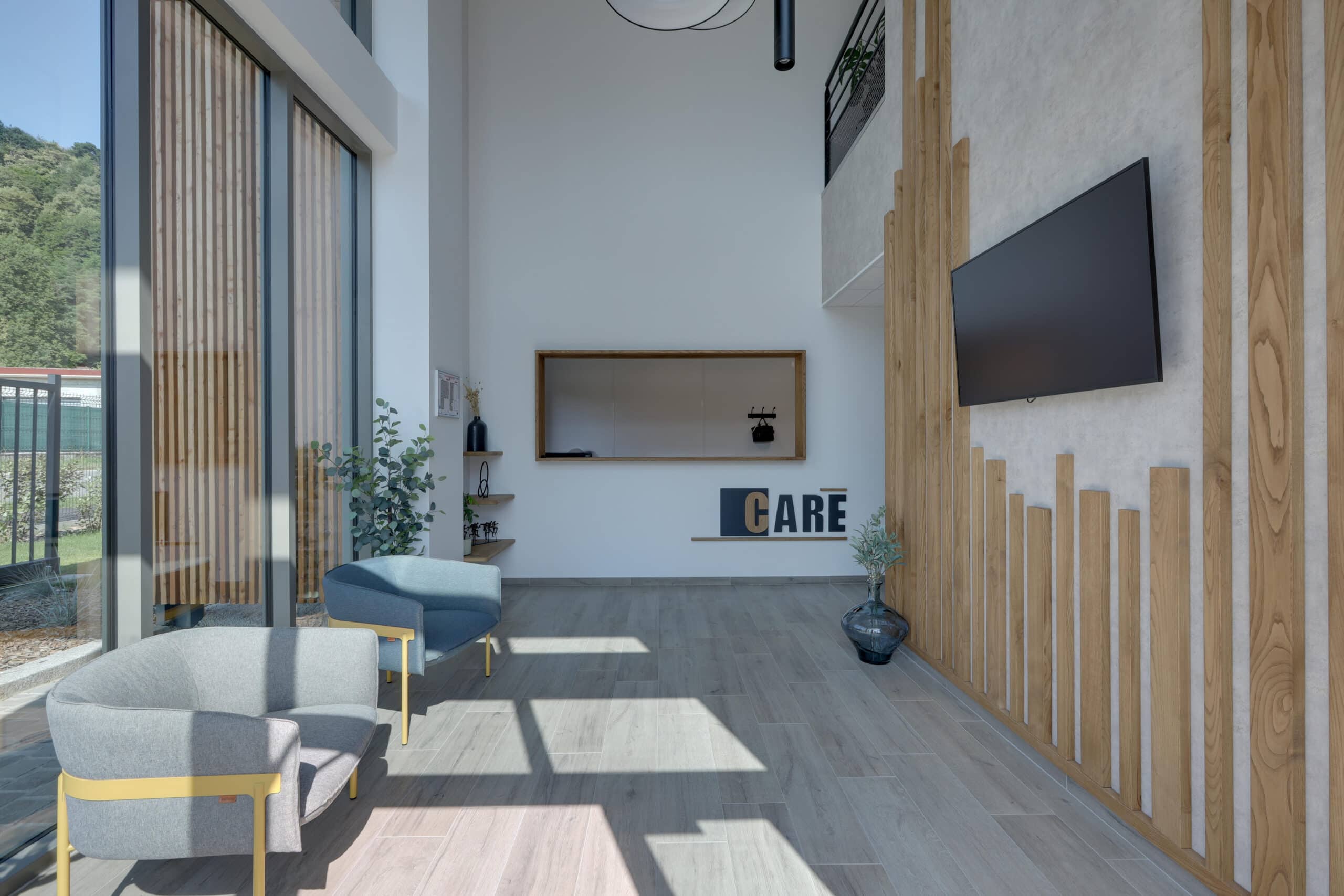 L’aménagement en mobilier et en décoration a été conçu en cohérence avec la charte graphique de notre client, mettant en valeur leur logo. Pour créer une ambiance chaleureuse et accueillante, nous avons intégré des éléments en bois dans nos conceptions.