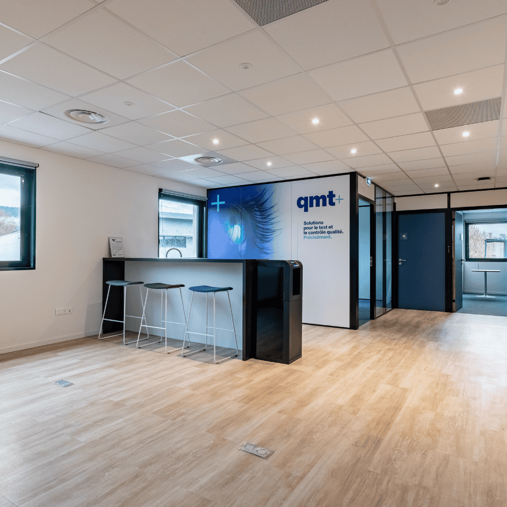 Née en janvier 2020 de la fusion de SAPHIR et QUALIMATEST, QMT bénéficie de près de 30 ans d’expérience dans les solutions de test et de contrôle de qualité pour divers secteurs industriels. Comptant une vingtaine de collaborateurs, principalement des ingénieurs, QMT gère des projets de toutes envergures. Pour accompagner son développement et transposer ses locaux historiques de 650m² vers un espace plus moderne, QMT a choisi de déménager dans le bâtiment « Kilimandjaro » situé dans le parc d’activités Alpespace, louant les deux premiers niveaux et validant rapidement la faisabilité de son activité dans ce nouveau site.